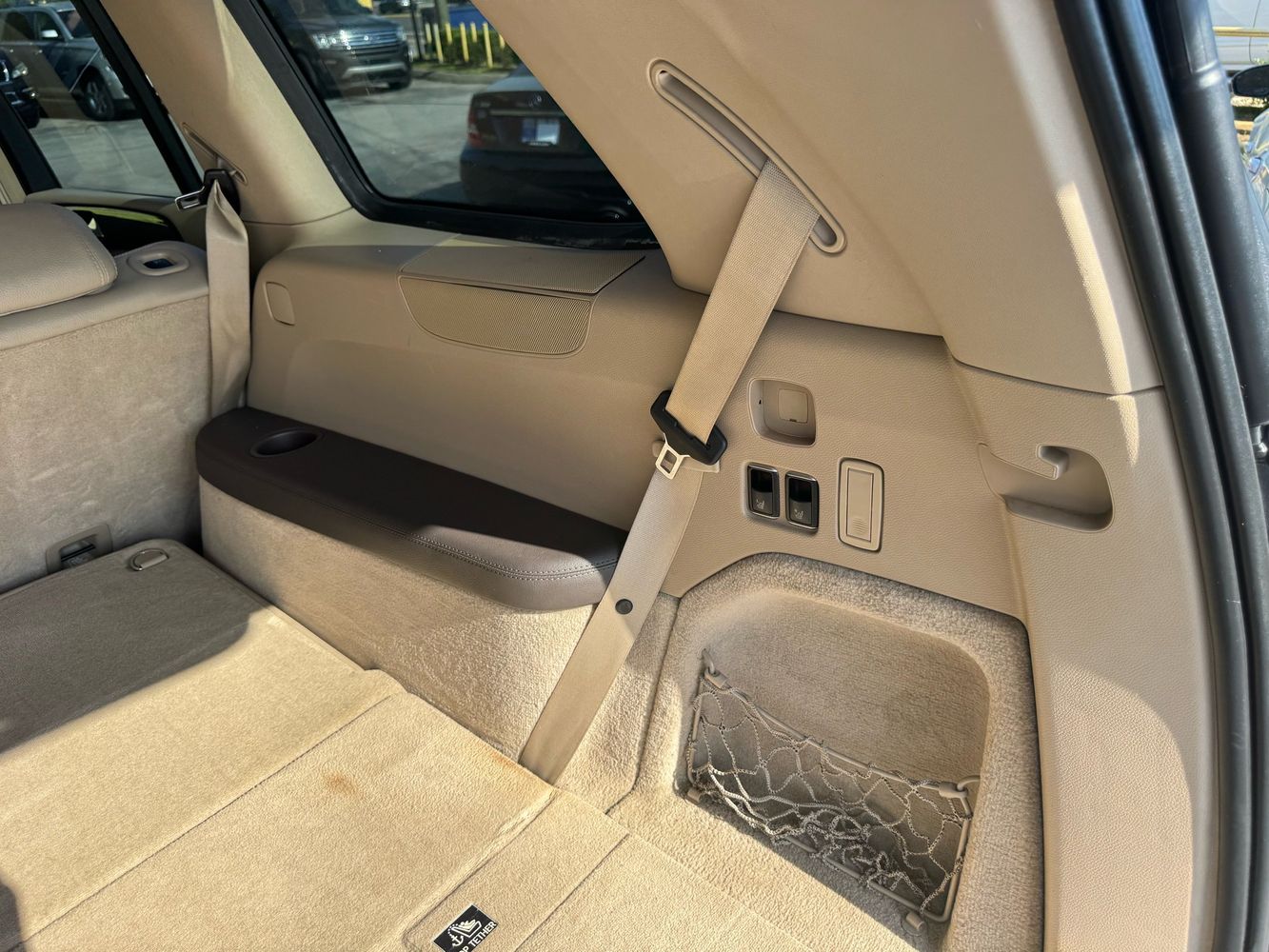 Third-row seatback upholstery: Carpet third-row seatback upholstery