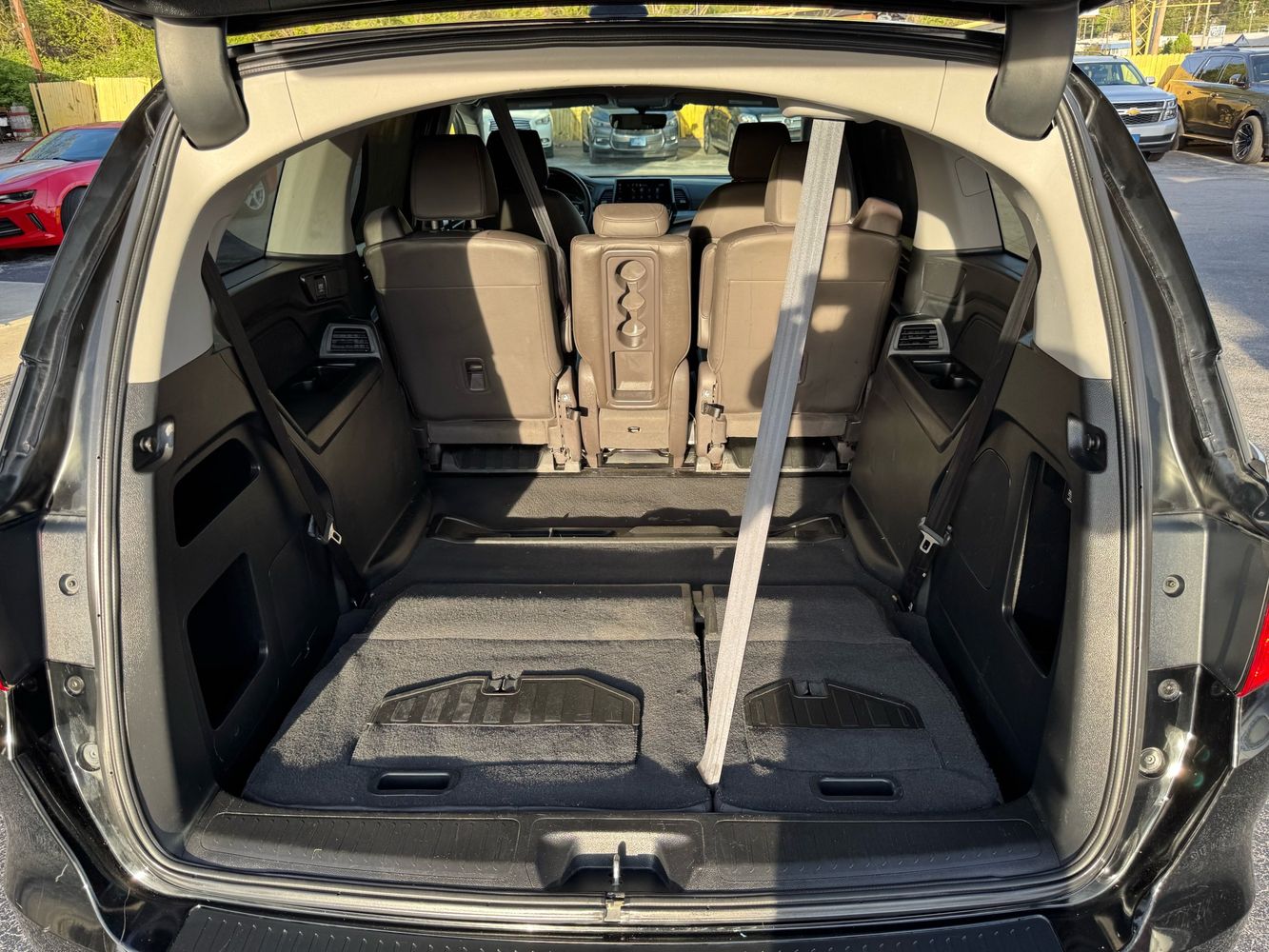 Third-row seatback upholstery: Carpet third-row seatback upholstery